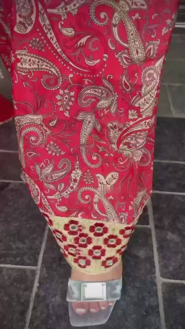 Farshi Plazzo Fabric:Pur Natural Crepe With Digital Print With Embroidery Work With Riyal Mirror Hand Work With Elastic