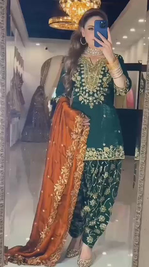💃Dhoti Salwar : Heavy Chinon Silk With Embroidery 5mm Sequence Work