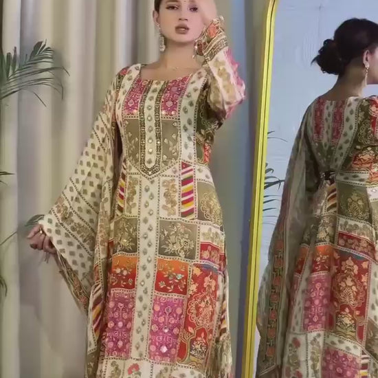 WORK :- BEAUTIFUL DIGITAL PRINT WITH READY MADE LACE(REAL MIRROR HAND WORK)