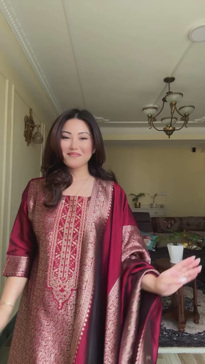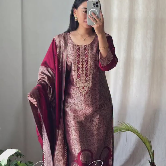 Beautiful Suit Sets in pure Banarasi Suit Set Top pent with duppta with jcard wiving