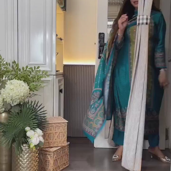 Beautiful 3 PIS Suit Sets in Pure KitKat Silk Top with Full Handwork