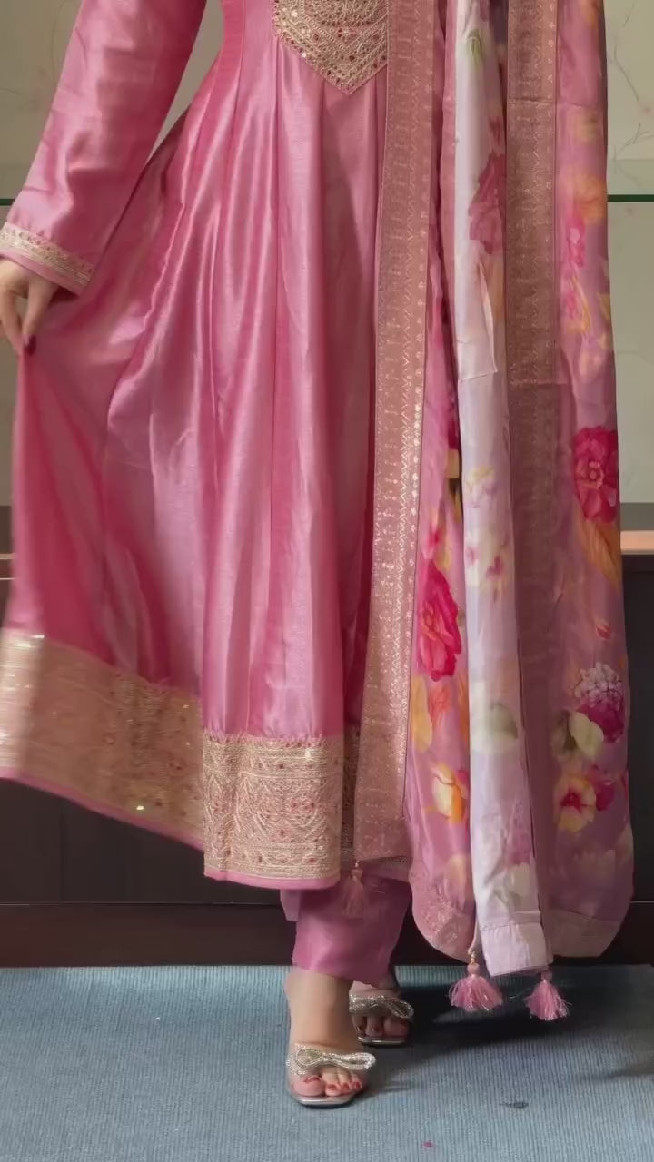 Most Magnificent Banana Silk Anarkali Style Suit Set